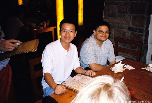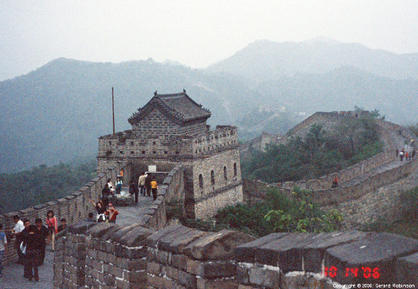 The photos below document my journey, somewhat. The early photos are grainier than later ones, in general, since the film in the camera was over a year old at the time (oops...still had some undeveloped photos from a trip to Disney with relatives). Other photos that seem grainier were taken in low light. I'm really considering getting a digital camera with image stabilization and more auto focus points, since many of the photos did not turn out as well as could be hoped from blurriness or movement (this collection is about 40% of the total number taken). This table's background color was taken from the color of the Beijing sky in one of my photos (I'm told it's "sand season" in October in Beijing, where the dried out desert sand moves into the "bowl" that is greater Beijing). The size of this table and the photos shown within, was picked to just fill the width of a 1024x768 screen. |