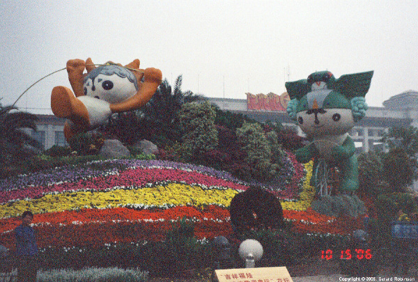 Here's the new Olympics 2008 mascots on display in Tiananmen Square.
