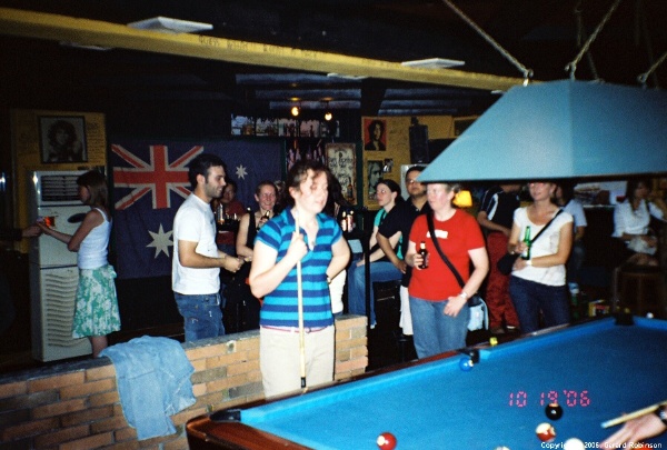 Australian tour company), played darts and shot pool. Ignoring the woman